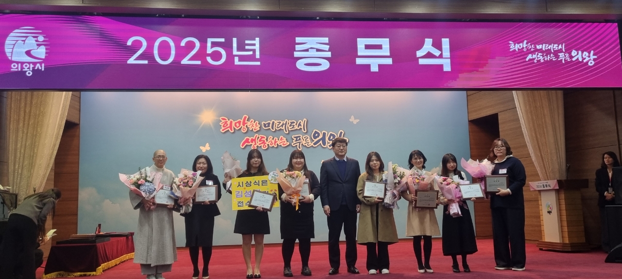 의왕시가 2025년 감염취약시설 감염예방교육에 적극 참여하고 감염관리 실천에 모범을 보인 시설을 선정해, 지난해 12월 31일 시청 대회의실에서 열린 종무식에서 감염관리 유공 표창을 수여했다고 밝혔다.